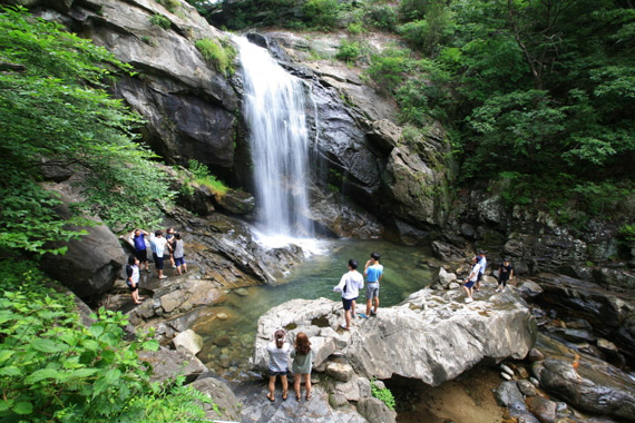 구례 가볼만한곳 베스트 10 세번째, 수락폭포는 구례군 산동면 원달리에 위치하고 있고 높이가 15m에 달하고 시원하게 감소하는 물줄기와 경치가 멋들어진 폭포인데요. 그저 바라보기만 해도 가슴이 뻥 뚫리고 온몸에 새로운 기운이 솟아남을 느낄 수 있는 폭포인데요. 근처에 피아골과 화엄사가 있어 함께 방문하시기에도 좋아요. 수락폭포는 물맞이 폭포로도 유명하며, 주민들이 신경통과 허리 통증에 효험이 있다며 자주 애용하는 곳이기도 해요. 물이 맑고 깊어서 여름철 물놀이에도 제격이고요.