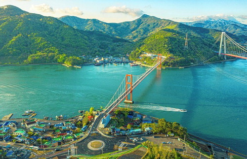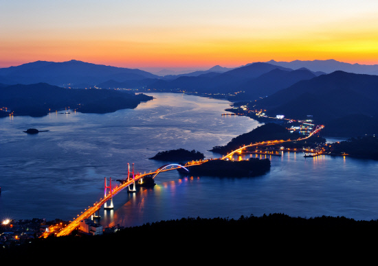 남해 가볼만한곳 베스트10 세번째, ‘남해도’라 불리던 본섬에 이은 두 번째로 큰 섬인 ‘창선도’와 사천시의 ‘삼천포’를 잇는 거대한 다리인 ‘창선삼천포 대교’는 남해대교 개통 이후 반드시 30년만인 2003년 4월에 완공된 총 길이 3.4㎞에 달하는 그야말로 대교로서 국내 최초로 섬과 섬을 연결하는 교량이다. 그리고 청선삼천포대교는 2006년 7월 건설교통부에서 선정한 ‘한국의 아름다운 길 100선’ 중 대상으로 선정되어 우리나라에서 명실공히 가장 아름다운 길로 만천하에 알려졌습니다. 창선과 삼천포 사이 4개의 섬을 하나로 연결하는 이 긴 다리는 길이나 모양이 제각기 다른 개성을 보여주고 있습니다. 이 다리들은 단항교, 창선교, 늑도교, 초양교를 합쳐 통칭 창선-삼천포대교라는 이름의 다섯 개 교량이 바다 위를 가로지르고 있어 마치 거대한 징검다리를 건너는 듯한 기분마저 든다. 1995년 2월 착공해 2003년 4월 완공된 섬과 섬을 잇는 이 대교는 교량 자체가 관광자원이 된 경우로 빼어난 야간 조명과 함께 봄이면 노란 유채꽃 향연으로 전국의 사진애호가들의 발길을 붙드는 곳이기도 합니다. 섬과 섬을 잇는 창선삼천포대교를 건너면 가슴이 두근거립니다. 물살 빠른 지족해협을 건너면 남해군 창선면입니다.