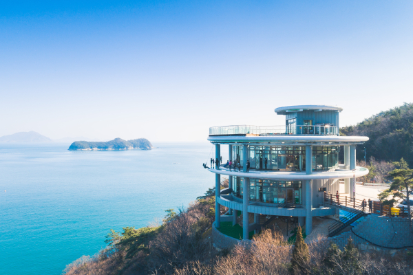 남해 가볼만한곳 베스트10 다섯번째, 하늘위를 걷는듯한 아찔한 액티비티 스카이워크! 360도 조망이 가능한 원통형으로 ‘하늘 위에 떠 있는 기분’을 만끽할수 있는 물미해안전망대는 자유로운 여행객들의 또 다른 벙커로 인기만점! 자유로운 여행객들의 또 다른 벙커, 물미해안전망대, 마치 꽃들의 사랑을 전하는 나비처럼 구불구불한 이 도로는 나비의 날갯짓처럼 부드럽고 날렵합니다. 이 도로의 한 점 쉬어가는 공간이 되어주는 ‘물미해안전망대’는 자유로운 여행객들의 또 다른 벙커로 인기만점입니다. 2층 카페 외곽에 있는 스카이워크는 너비 1m에 총 길이 80m입니다. 그중 약 20m가 절벽 위 바다 방면으로 향해 있으며 투명유리 아래로 바위와 부서지는 파도를 만끽하며 자연을 볼 수 있습니다. 더 가까이서 일렁이는 바다를 마주하고 싶다면 전망대 옆 계단을 따라 바다로 내려가 보기를 추천합니다. 매일 같다고 느꼈을 일상일지라도 그곳에서 만난 파도가 분명 새로운 감동을 안겨 줄 것입니다. 삼동면 대지포 마을 인근에 조성되었다 해서 지역민들에게는 ‘대지포 전망대’라는 별칭으로도 불리기도 하는 ‘물미해안전망대’는 2016년 착공해 2019년 12월 개장했습니다. 남해바다를 밝히는 등대 콘셉트로 지어진 이곳은 360도 조망이 가능한 원통형으로 ‘하늘 위에 떠 있는 기분’을 만끽할 수 있게 해줍니다. 2층으로 구성돼 있으며 1층에는 여러가지 품목을 살 수 있는 남해군 특산품 판매장, 2층에는 베이커리 카페와 옥상전망대로 꾸며져 있습니다. 이곳의 인기 있는 액티비티는 단연 ‘스카이워크’로 관광객들은 와이어 줄에 의지해 유리 바닥 위를 걷고 일순간 공중 점프를 하는 것으로 짜릿한 인생 사진을 얻고, 추억을 가져간다.