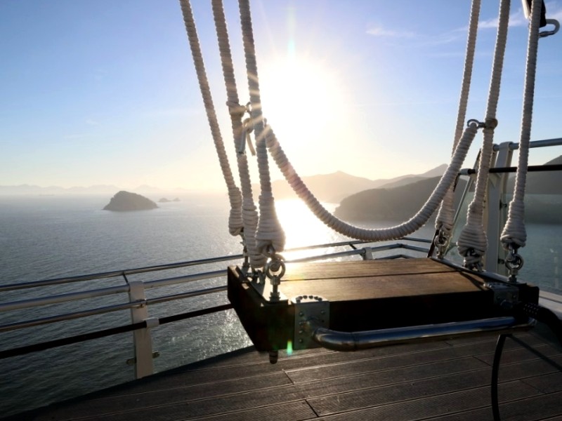 남해 가볼만한곳 베스트10 두번째, 미조면 송정리 산 352-4에 자리한 설리 스카이워크는 2019년 물미해안전망대에 이은 또 다른 매력의 전망대이자 관광명소다. 원통형 구조로 360도 어디에서나 아름다운 남해바다를 조망할 수 있는 삼동면의 물미해안전망대에는 ‘와이어 줄’에 의지해 건물 외곽을 걸을 수 있는 스카이워크 체험이 있으면, 설리 스카이워크는 ‘하늘 그네’가 있습니다. 원형의 붉은색 기둥은 하나의 돛대를 상징하며 이는 곧 남해인의 뜨거운 마음을 닮은 것만 같다. 국내 최초 ‘비대칭형 캔틸레버 교량’으로 지어진 스카이워크는 약 36m높이에 폭 4.5m, 총 길이 79m의 구조물로 되어있습니다. ‘한쪽 끝은 고정되고 다른 끝은 받쳐지지 아니한 상태로 있는 보’를 뜻하는 ‘캔틸레버’, 이 설리 스카이워크의 경우 43m로 전국에서 가장 긴 캔틸레버 구조물이라 할 수 있다. 그리고 스카이워크 끝부분은 하단이 유리로 되어있어 아찔한 해안절벽을 내려다볼 수 있습니다. 야간에는 스카이워크 전체에서 경관조명을 감상할 수 있습니다. 다시 여기 바닷가 낭만을 불러일으킬 인기곡에 맞춰 조명을 디자인해 다른 분위기의 남해 밤을 만나게 합니다. 설리스카이워크가 있는 미조면에는 대표적인 유인도인 조도와 호도를 들어가는 배편도 있어 섬에서 섬으로의 여행도 가능하고, 5월엔 멸치축제로 전국 미식가를 불러 모으는 등 바다매력을 담뿍 느낄 수 있는 곳입니다.