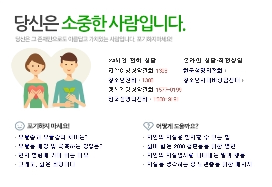 우울증 증상 세번째, 우울증 환자들은 정신적 고통으로 인해 견디기가 매우 힘들어져요. 이런 상태가 지속적이면, 비관적인 생각에 빠져들게 되고 결국 극단적 선택을 할 수 있어요. 이러한 경우 혼자 힘으로 견뎌내려고 하지 않고, 주변 사람들의 도움이나 빠른 병원 진단이 필요해요.