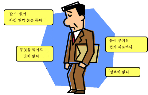 우울증 증상 첫번째, 평상시 피로가 많이 축적되면 신체가 에너지를 발산하지 못해요. 이런 현상은 우울증 초기 증상으로 많은 사람들이 단순히 넘어가는 경우가 허다해요. 피곤하여 또는 잠이 부족해서라는 말로 저하된 체력을 대수롭지 않게 여기는데, 피로가 우울증의 원인이 될 수 있기 때문인데요.